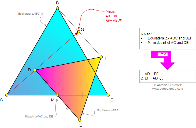 A triangle is equilateral if and only if the circumcenters of any three of the smaller triangles have the … That means, all three internal angles are equal to each other and the only value possible is 60° each. Equilateral triangles also called equiangular. The synthetic affine definition of the midpoint m of a segment ab is the projective harmonic conjugate of the point at infinity, p, of the line ab. Learn more about this interesting concept of circumcenter of triangle, its methods, and solve a few examples. Jun 23, 2021 · midpoint theorem: It is considered as the axis or imaginary line of the object. When a line is drawn between the midpoints of any two sides of the triangle, it is always parallel to and half of the length of the third side. That is, the point m such that h[a,b; You now have two congruent sides. If be is congruent to da then bc is congruent to cd because c is also the midpoint of ad. What is the statement of midpoint theorem? The midpoint theorem can be applied to any triangle.