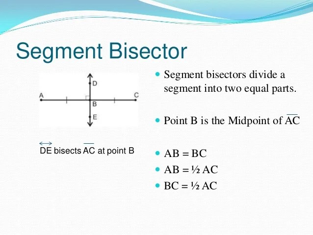 The line of symmetry is the line which passes through the centre of the object or any shape. That is, the point m such that h[a,b; The midpoint theorem can be applied to any triangle. Definition of angle bisector definition of segment bisector definition of midpoint definition of right angle definition of perpendicular definition of congruent definition of complementary angles definition of supplementary angles definition of adjacent angles definition of parallel lines postulates and properties: What is the statement of midpoint theorem?